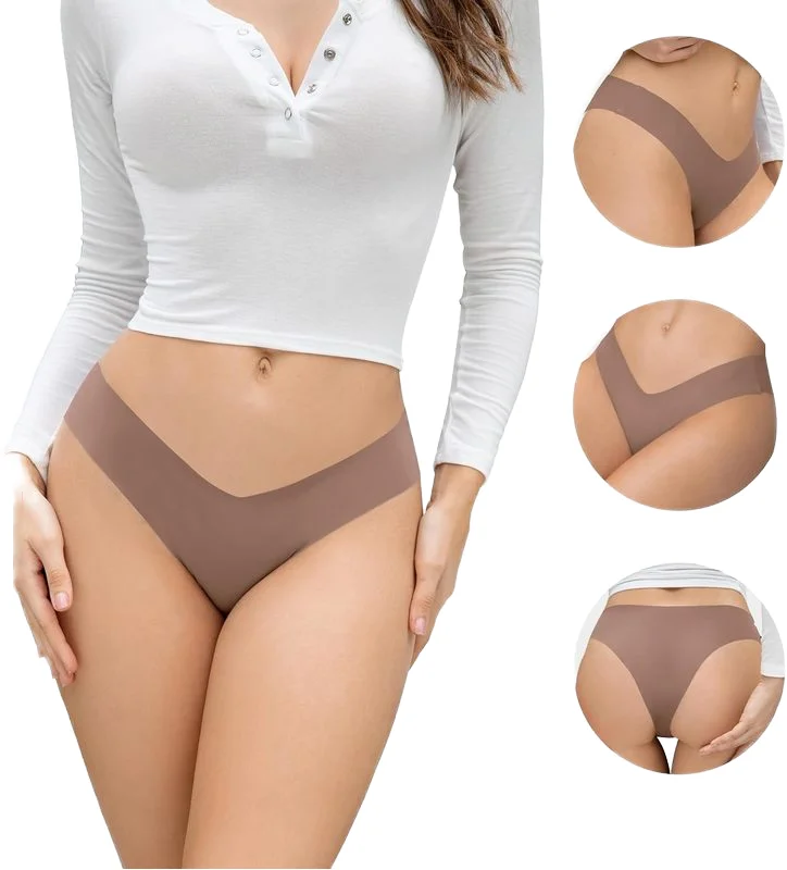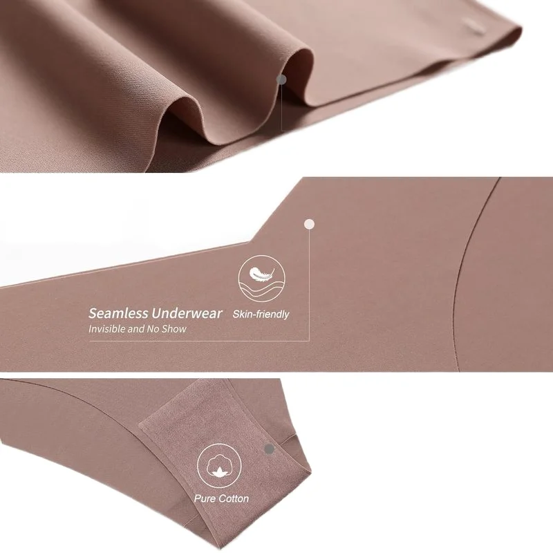 JENGS Women's Ice Silk Seamless Underwear Low Waist Sexy Briefs Pure Cotton Crotch Hipster Invisible Young Girl Design Logo